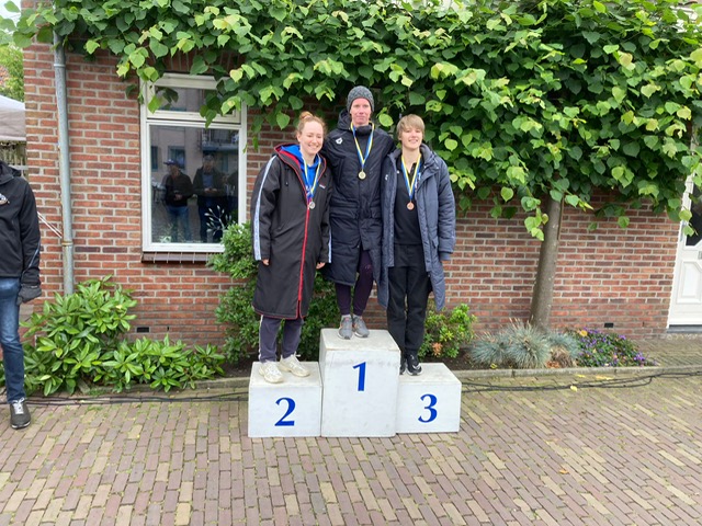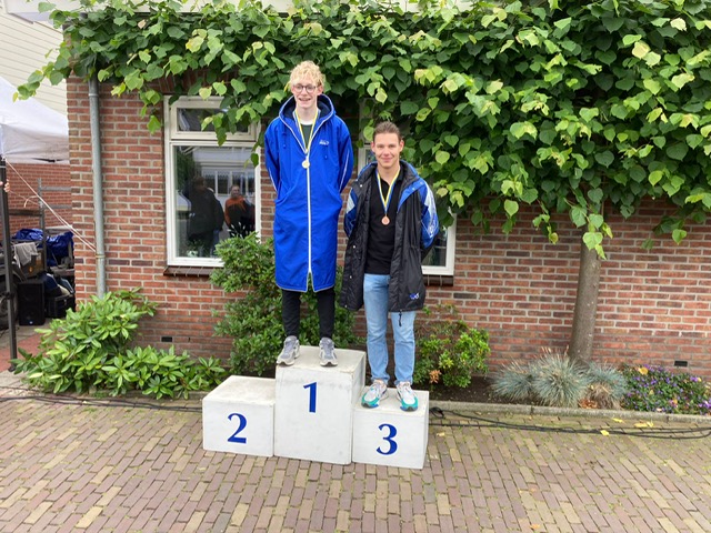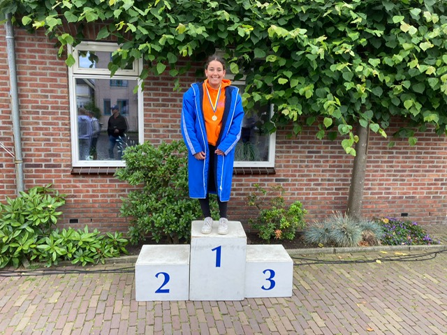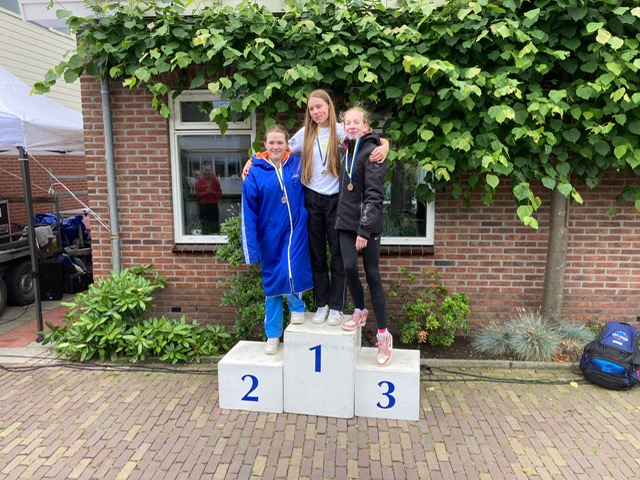 Sarah zwom een ijzersterke 3 km-race, net als Nina, Renske en Hessel. Dat leverde hen – elk in hun eigen leeftijdscategorie – een mooie medaille op.